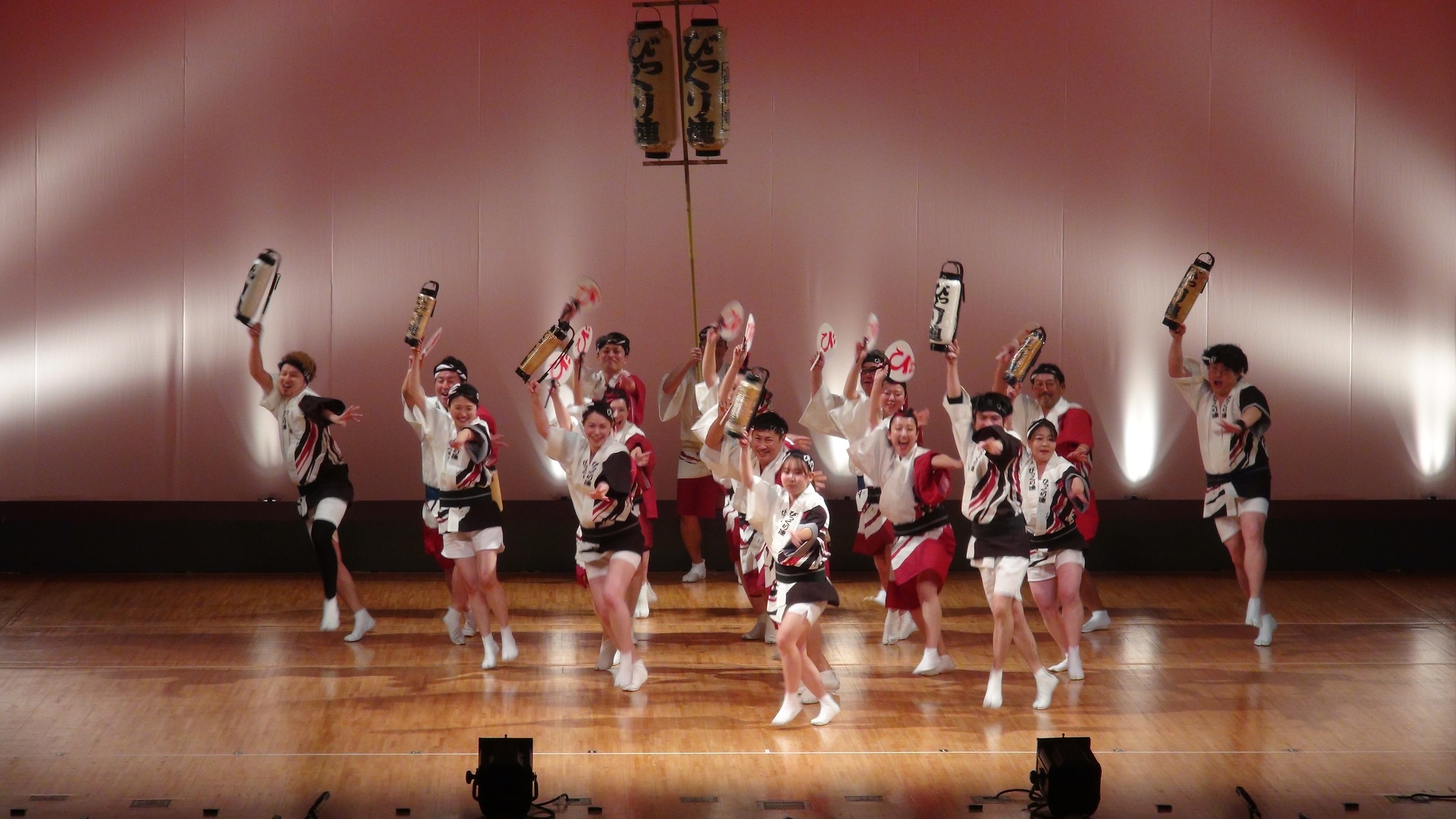 二拍子のリズムをベースに、疾走感を加えた独自のリズムに合わせ、弾ける団扇と提灯がダイナミックに踊り舞う、華やかな演舞をお楽しみください。