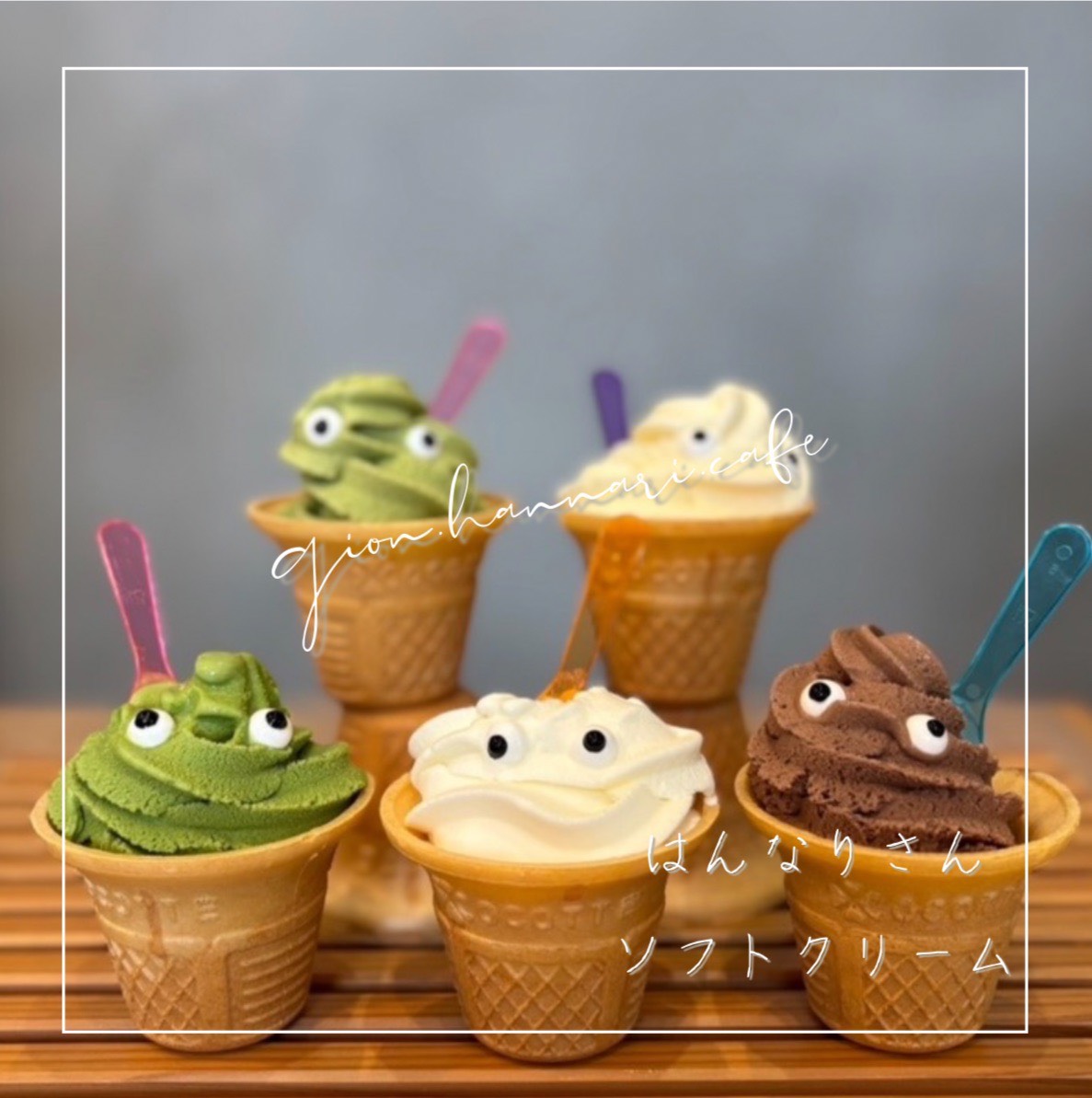 おめめが可愛い濃厚なプレミアムバニラソフトの「はんなりさんソフトクリーム」など、