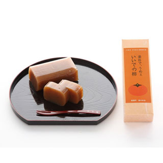 干し柿が入ったオレンジ色がとても鮮やかな羊羹。甘すぎない上品な味はお茶受けとしてもお土産としてもきっと喜んでいただけることでしょう。 |