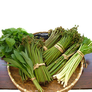 飯豊町の豊かな自然が生み出した山々からの贈り物「山菜」。特に中津川産の山菜はとても柔らかく上質なものとなっており煮物やおひたし・天ぷらなど様々な調理方法で食されています。 |