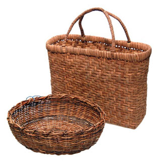 自然の恵を生かし地元でとれた「山ぶどうの皮」や「あけびの皮」で作られた「つる細工」。自然の風合いが何とも言えず使い込めば使い込むほどにつやが増します。